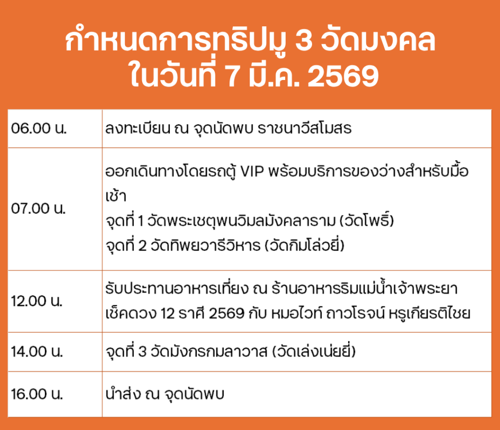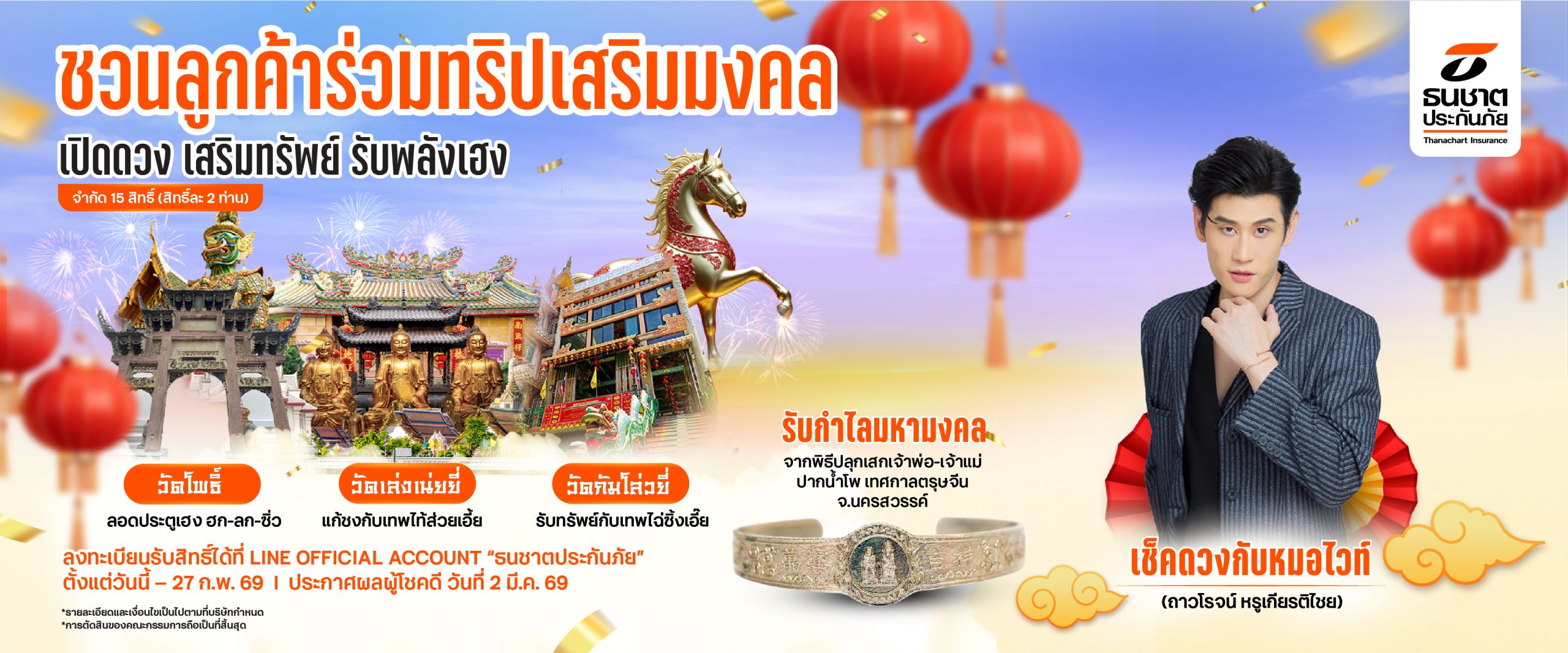 เพราะความคุ้มครองที่ดี ไม่ได้หยุดอยู่แค่ในกรมธรรม์ แต่คือความใส่ใจที่อยากยกระดับคุณภาพชีวิตของลูกค้าในทุกมิติ ธนชาตประกันภัยชวนลูกค้าคนสำคัญ ร่วมทริปมู 3 วัดมงคล เปิดดวง เสริมทรัพย์ ปรับพลังชีวิต พร้อมเช็คดวง เจาะชะตาชีวิต กับ หมอไวท์ ถาวรโรจน์ หรูเกียรติไชย และรับกำไลมหามงคล เจ้าพ่อ-แม่ปากน้ำโพ (หน้าผา) ต้อนรับปีม้าไฟอย่างมั่นใจและมีทิศทาง
