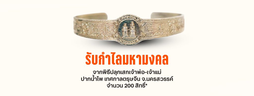 สำหรับผู้ที่ไม่ได้รับสิทธิ์ร่วมทริป บริษัทฯ ขอมอบกำไลมหามงคล เจ้าพ่อ-แม่ปากน้ำโพ (หน้าผา) จำนวน 200 สิทธิ์* (จำกัด 1 สิทธิ์ ต่อ 1 ท่าน) ส่งให้กับท่าน